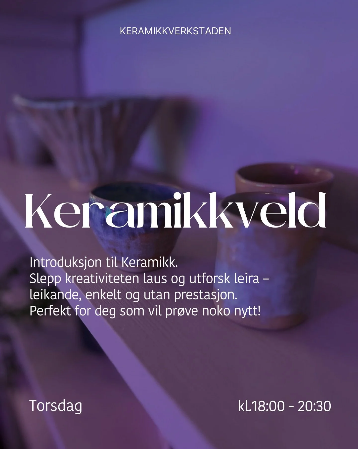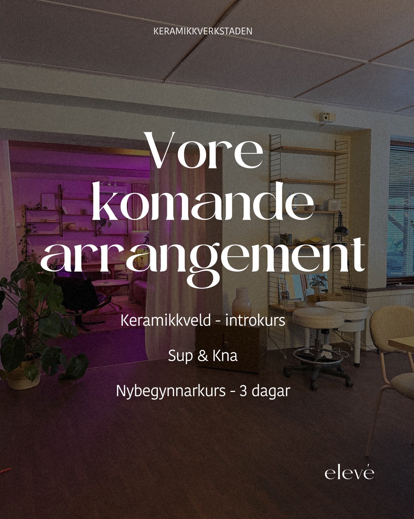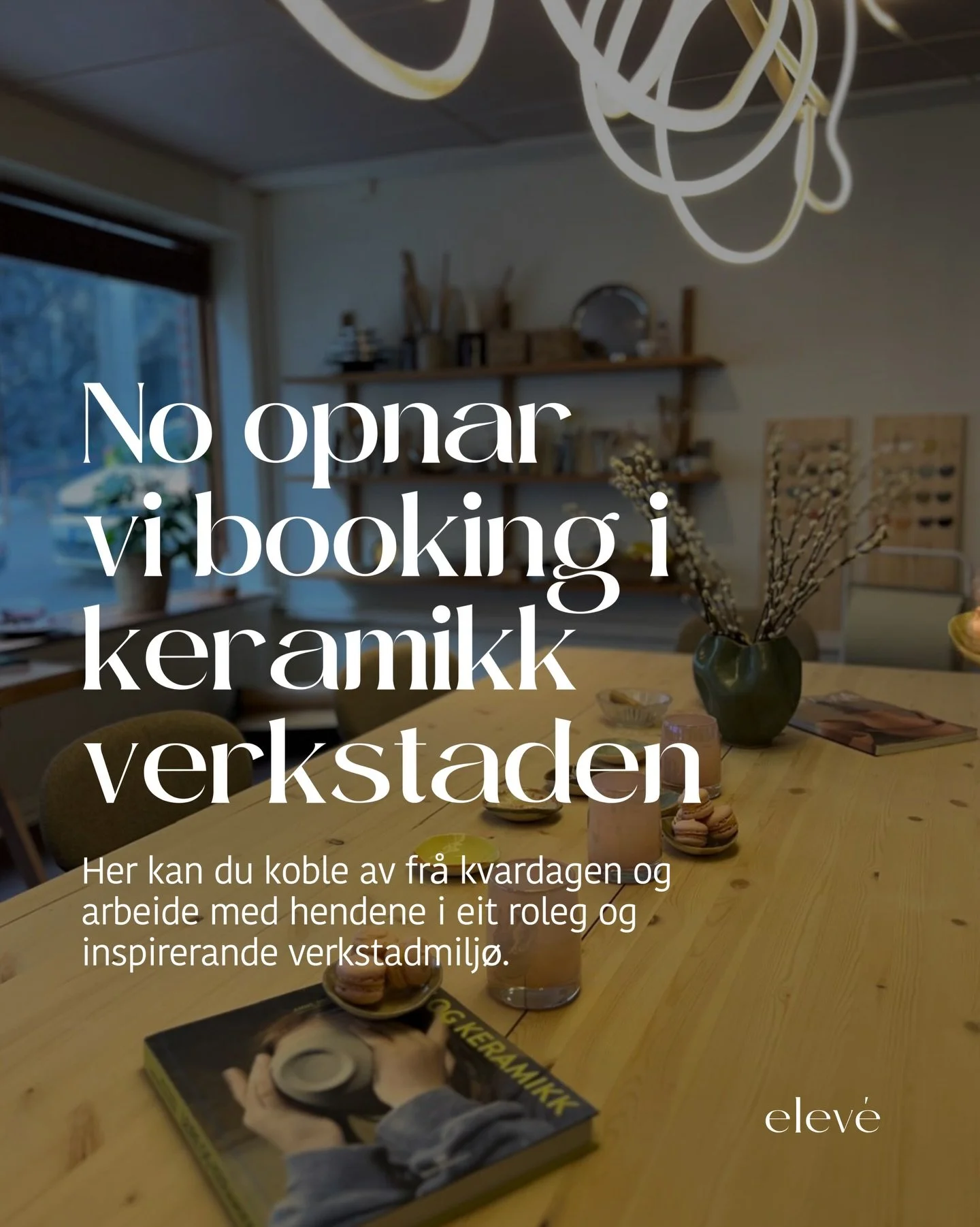 Keramikkverkstaden i Elevé Kollektivet er ein stad for læring, skaparglede og fellesskap. Du kan delta på kurs og workshops, eller bli medlem og bruke verkstaden på eigne prosjekt.