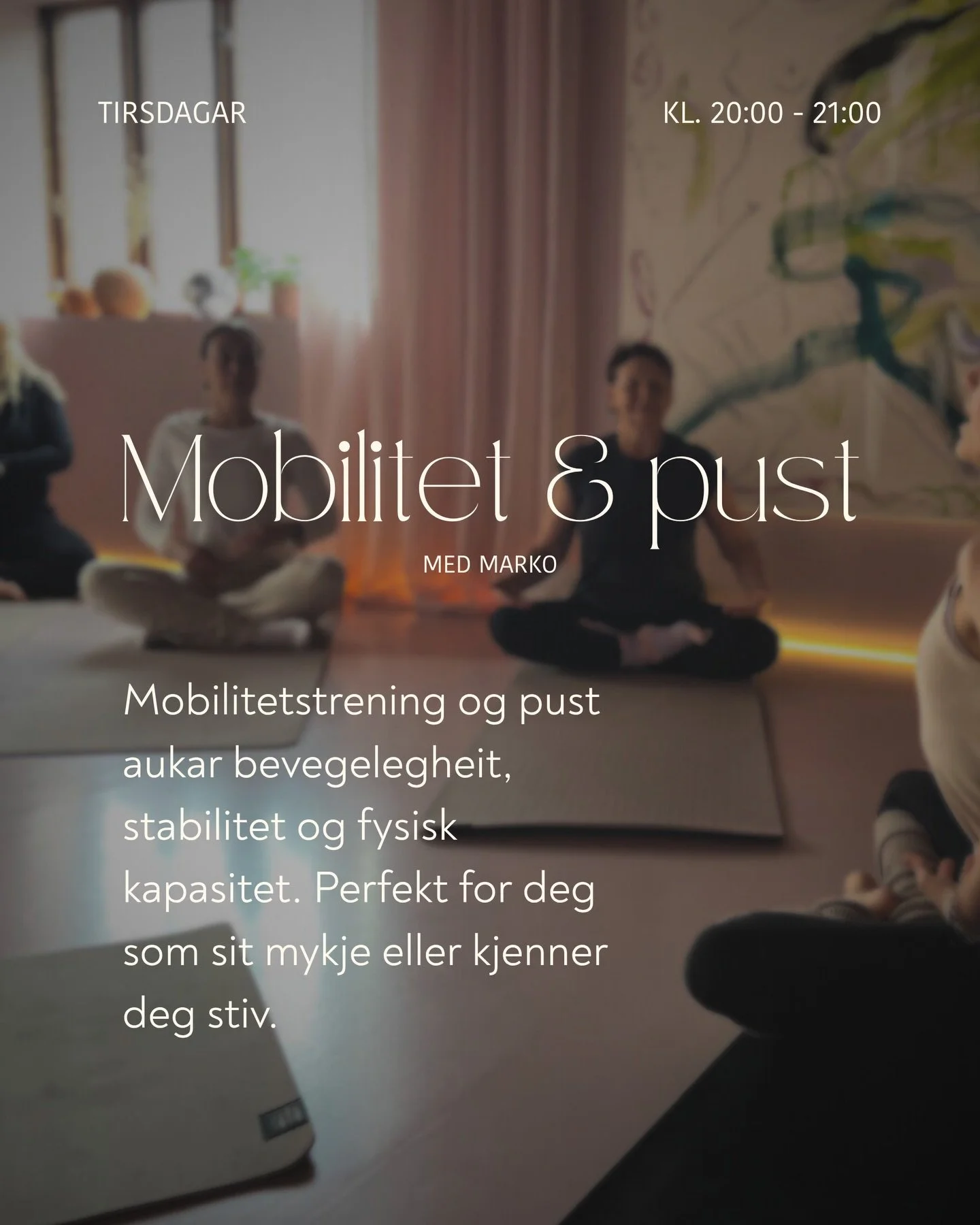 Timane passar for alle nivå og blir leia av erfarne instruktørar som legg vekt på tryggleik, ro og fellesskap. Du kan delta enkeltvis eller booke fleire timar for å skape ein fast rutine. Vi sel også klippekort, følg linken under.